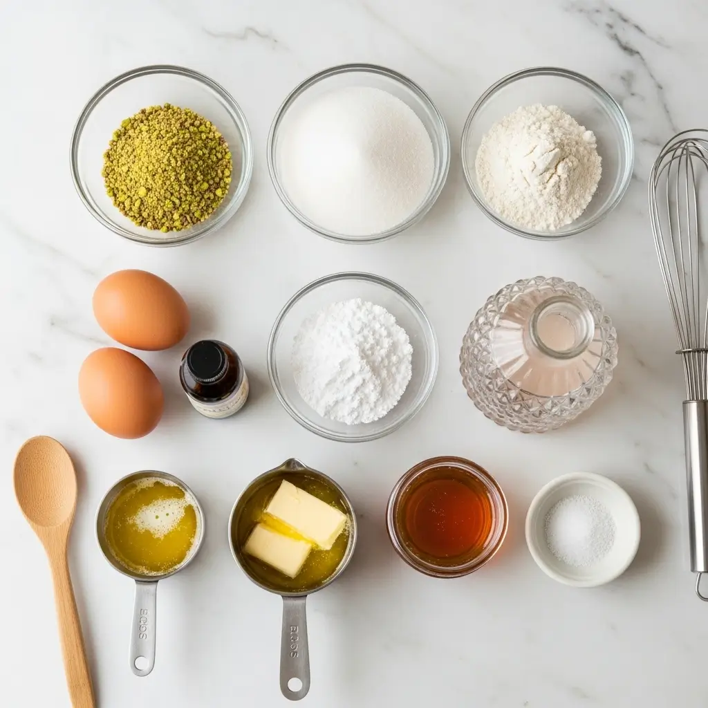 - Powdered Sugar (½ cup): Mixed with a little water, this creates the “glue” that holds pistachios on top.