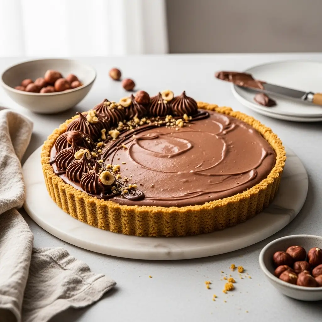 S’mores Nutella Tart: Toast mini marshmallows on top using a kitchen torch. Add graham cracker pieces around the edge for a s’mores vibe.
